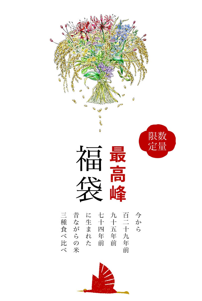 原種・在来種のお米を三種類食べ比べできる特別な福袋です。